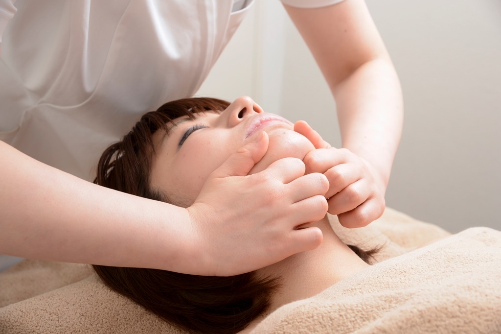 ディープなハンドテクニックで、顔の歪みを本来の位置に矯正。さらに顔筋ケアで立体的な小顔へ導く。